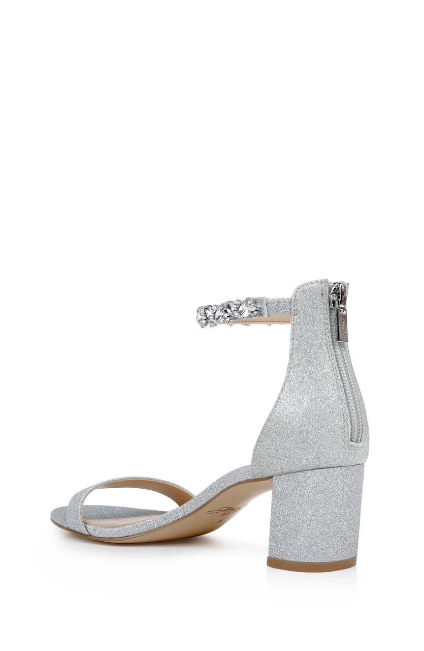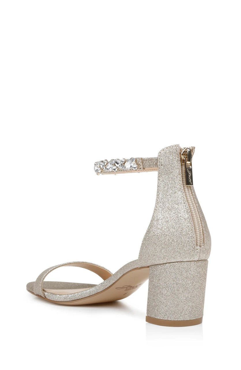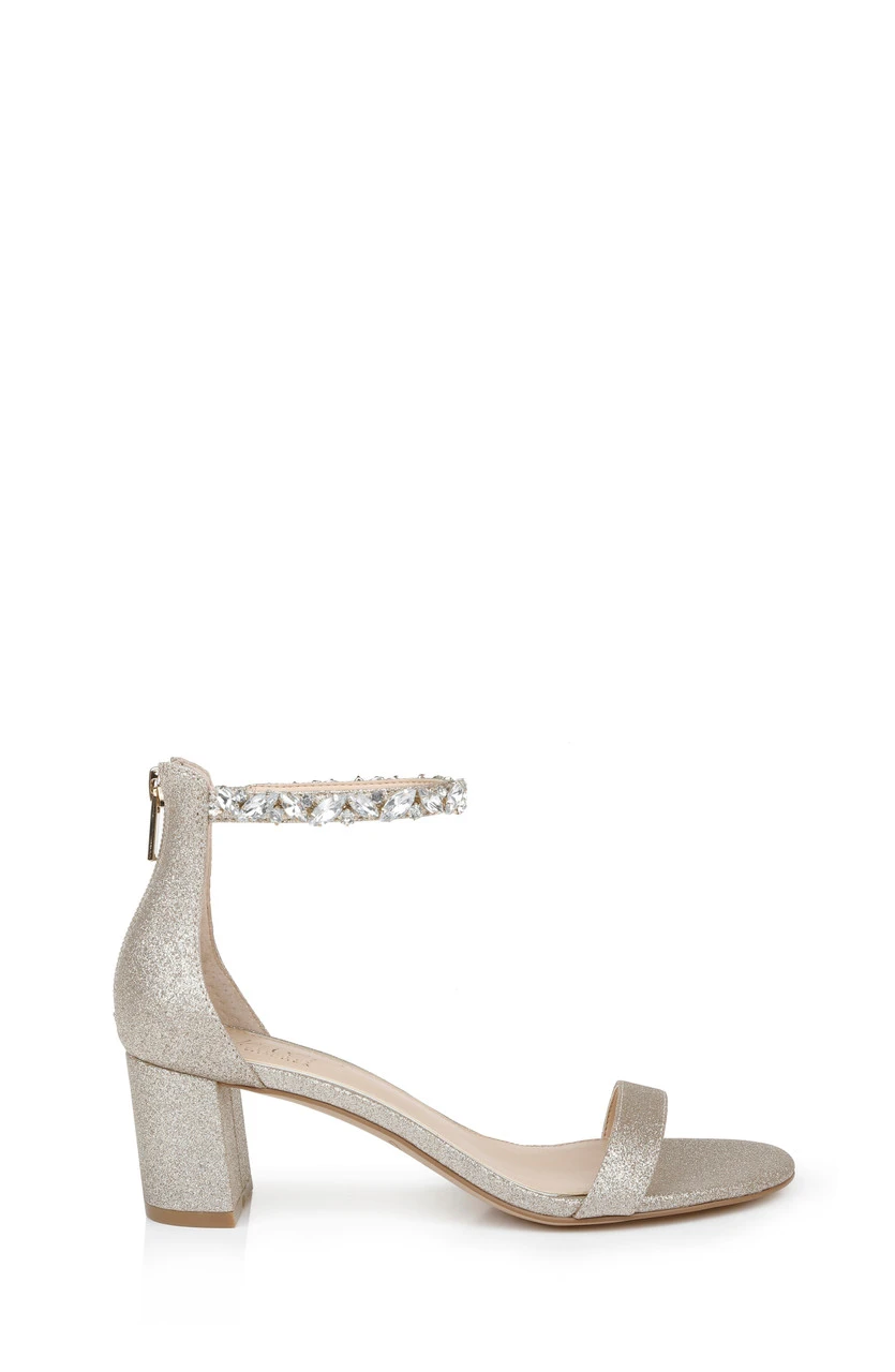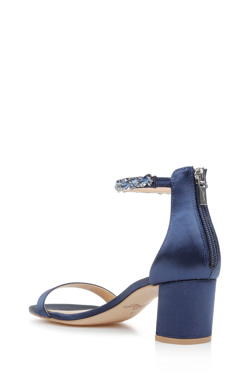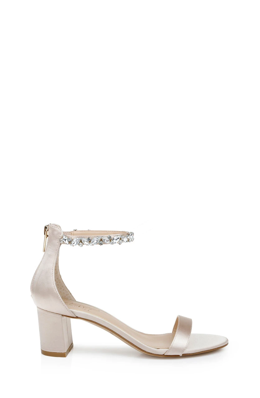 Navette and circular rhinestones adorn Lydia’s ankle strap, the crowning detail of this design. A zip at the back aids a perfect fit, and the open-toe design keeps you cool, calm, and courageous.