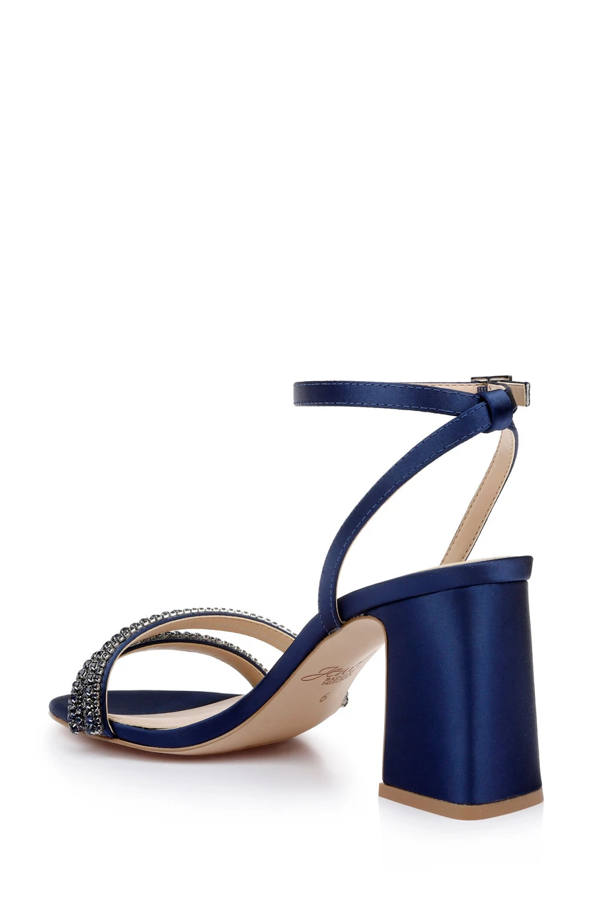The classic block-heeled sandal is given a glamorous update with two stunning gemstone-encrusted straps and a fashionable ankle strap, bringing a touch of luxe style to your everyday look. Constructed of a satin upper, this fashion-forward style is the perfect accompaniment to your wardrobe—simply pair these with your favorite BM dress for an effortless date night ensemble or add them to your weekend getaway bag for instant runway-worthy flair!
