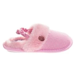 Badgley Mischka Girls’ Faux-Fur Slippers With Glitter Lines